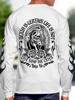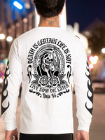 Nuestra polera Death is Certain está hecha de algodón de alta densidad (185 gr), asegurando resistencia y suavidad. Su estampado en serigrafía, exclusivo de Deja Vu, refleja una actitud sin miedo a lo desconocido. Pre-encogida, prelavada, y con tecnología antipilling para que siempre se vea como nueva. Sin etiqueta, para que te sientas cómodo todo el día. Diseñada y fabricada en Chile.